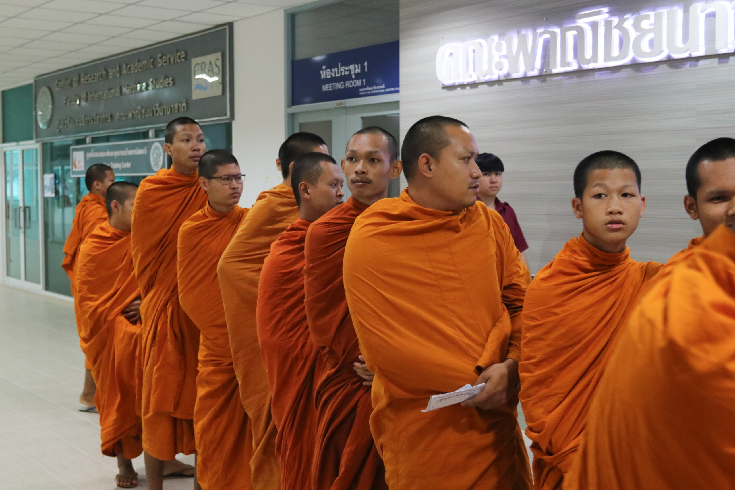 ผู้ช่วยศาสตราจารย์ไพรีพินาศ พิมพิสาร หัวหน้าภาควิชาวิศวกรรมทางทะเล ผู้แทนคณบดีคณะพาณิชยนาวีนานาชาติ ให้การต้อนรับวิทยาลัยเสริมทักษะพระภิกษุ สามเณร จังหวัดพระนครศรีอยุธยา แผนกช่างเชื่อมโลหะ (ระดับ ปวช.)และแผนกเทคนิคอุตสาหกรรม (ระดับ ปวส.) เข้าศึกษาดูงานคณะพาณิชยนาวีนานาชาติ มหาวิทยาลัยเกษตรศาสตร์ วิทยาเขตศรีราชา