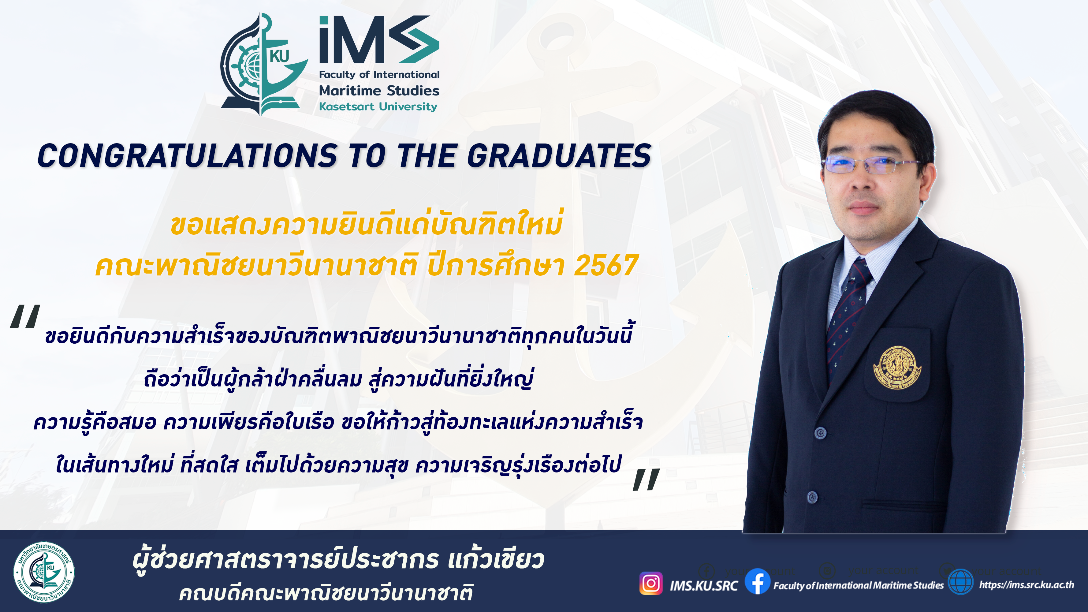 คณบดี คณะพาณิชยนาวีนานาชาติ แสดงความยินดีกับบัณฑิตจบใหม่ปีการศึกษา 2567